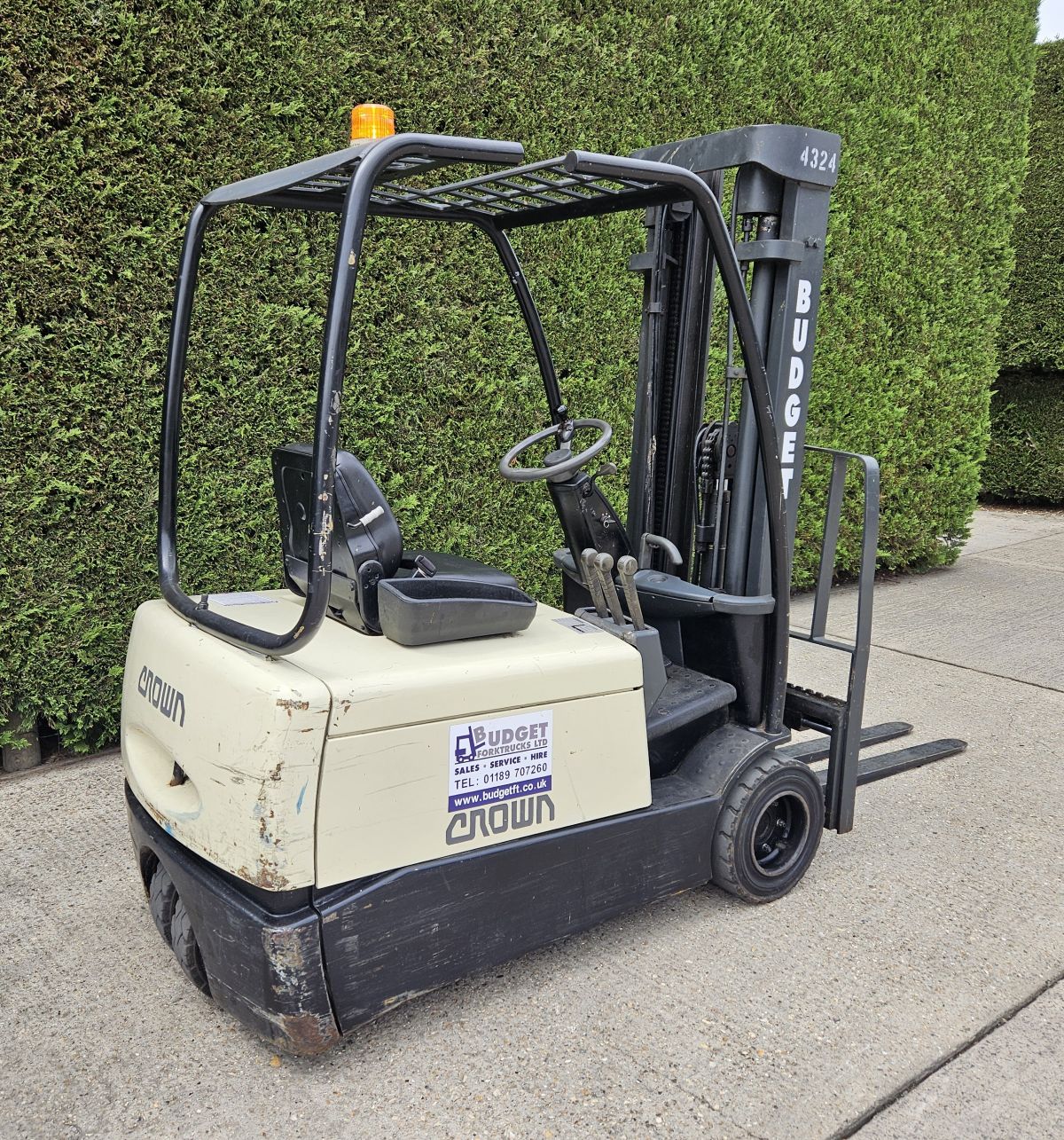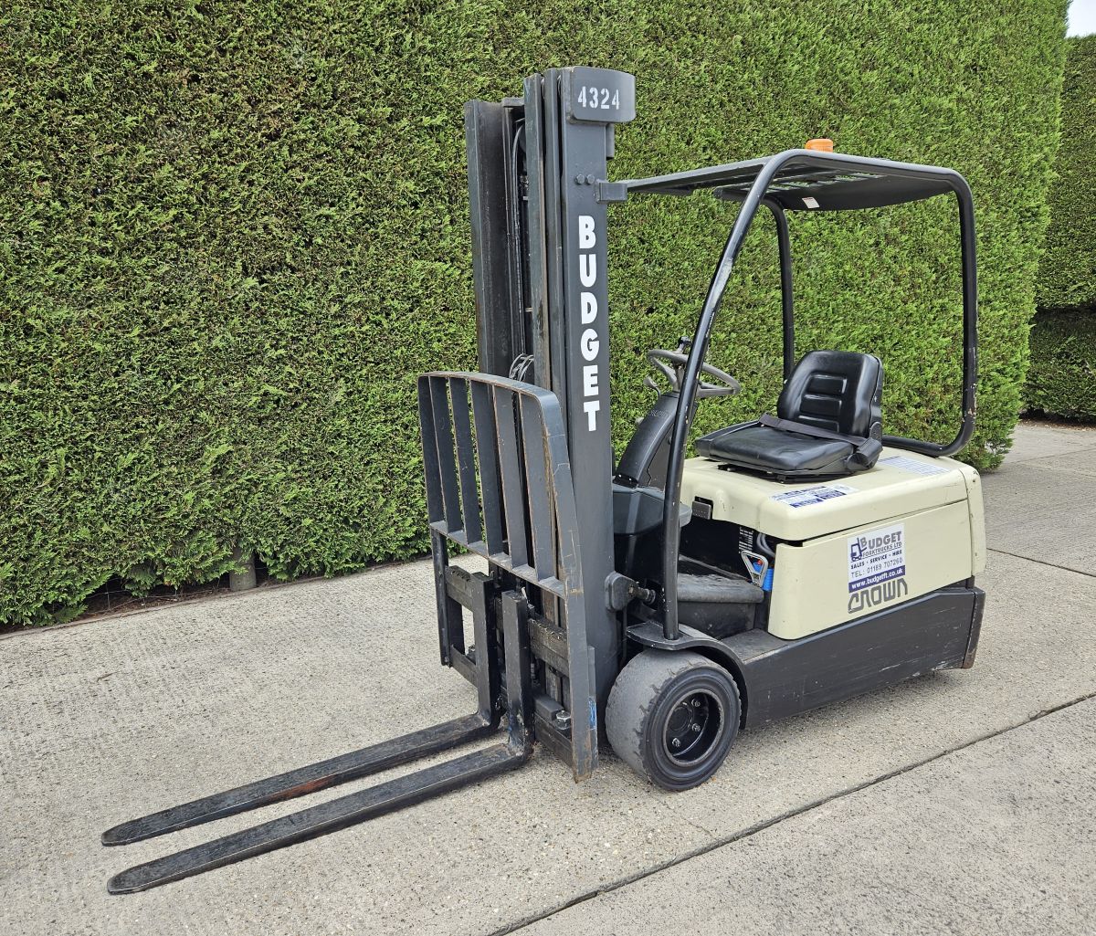4324 CROWN SC3018 electric 3 wheel forklift 1800kg with 4885mm lift height triplex mast & closed height of 2170mm & sideshift. Truck supplied serviced & will have full 12 month Thorough Examination.