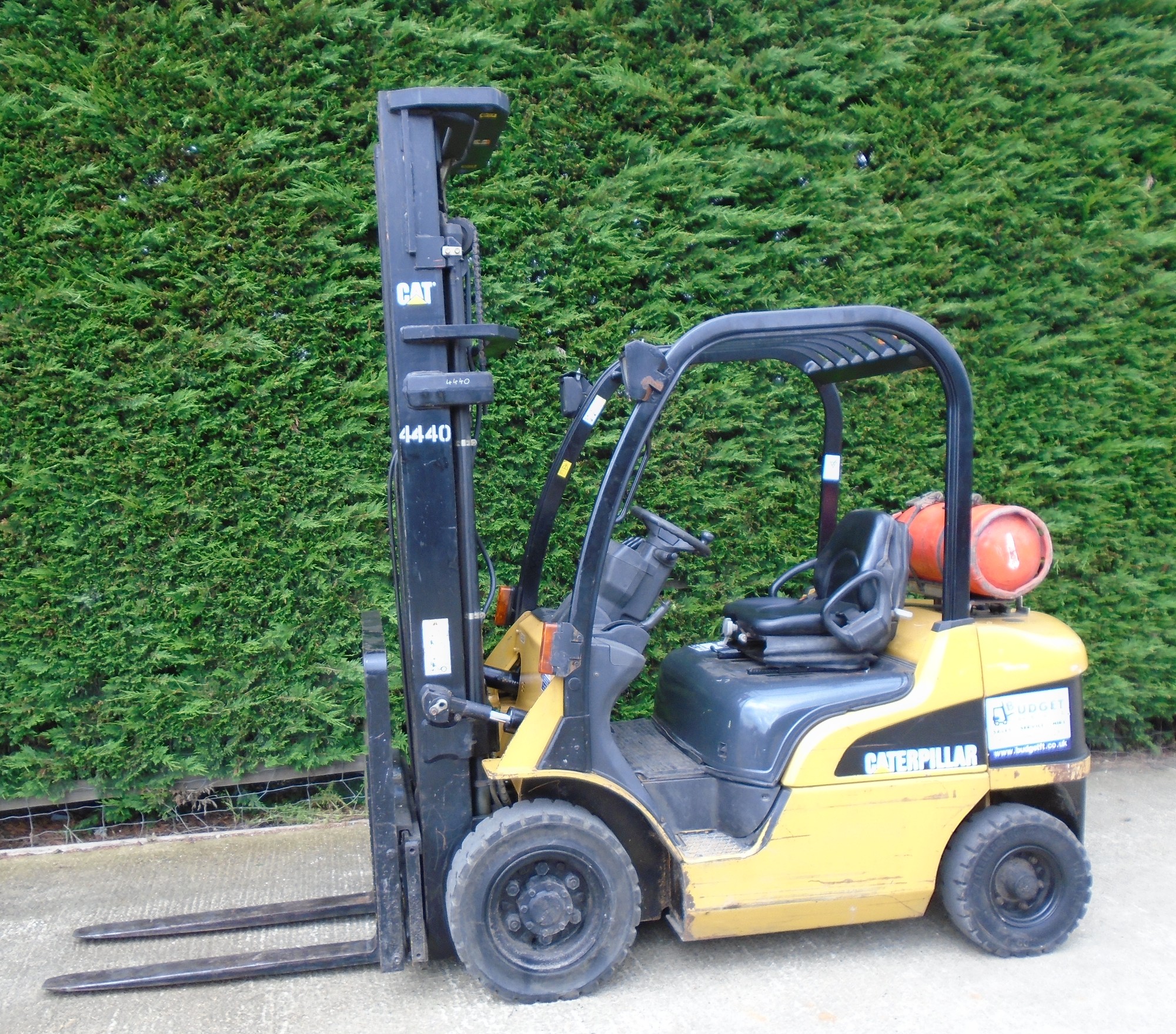 4440 Cat GP25N 2500kg Gas counter balance with sideshift 6500mm lift height & closed height of 2820mm.